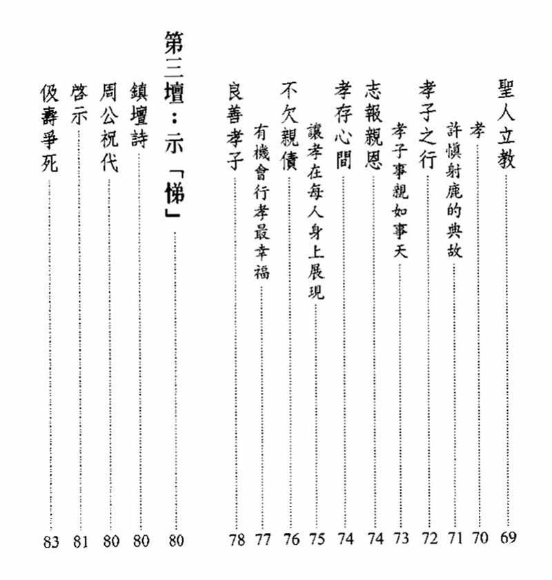 本書即是一系列探討這些幸福道理的第二部,選出十項主題: 孝、悌 、忠、信、禮、義、廉、恥、仁、慈等十個儒家主要的德目,一篇講一個德目,合稱為「十全救苦」。